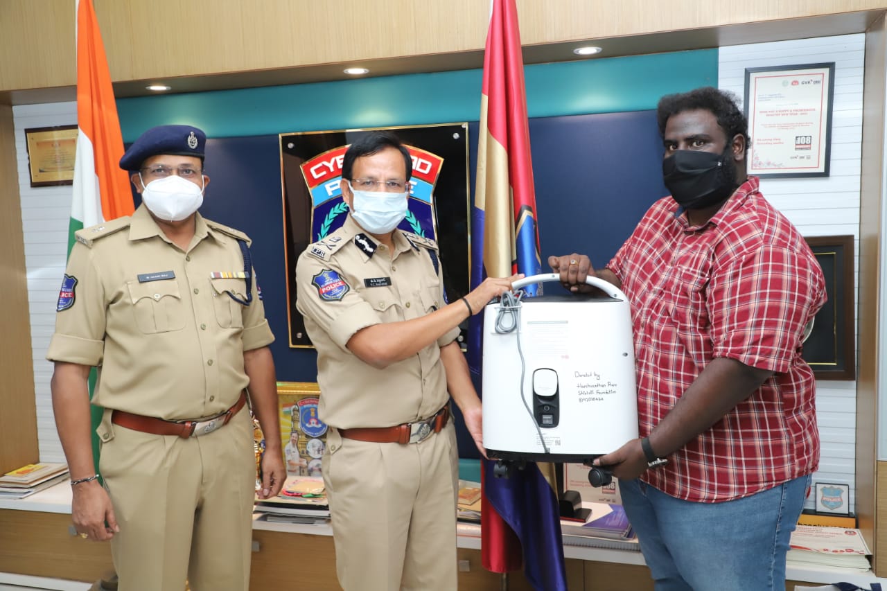 अभिनेता हर्षवर्धन राणे की ओर से शर्टॉफ फाउंडेशन के स्वयंसेवक अभिलाष एलाप्रोलू ने सीएआर मुख्यालय एडीसीपी माणिकराज की उपस्थिति में पुलिस आयुक्त, साइबराबाद, वीसी सज्जनर, आईपीएस को ऑक्सीजन कंसेंटेटर दिया।
