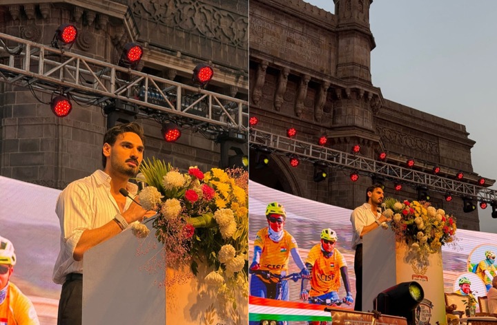 मुंबई: अभिनेता अहान शेट्टी ने गेटवे ऑफ इंडिया पर CISF के ‘वंदे मातरम कोस्टल साइक्लोथॉन 2026’ के मुंबई चरण में साइकिलिंग की।