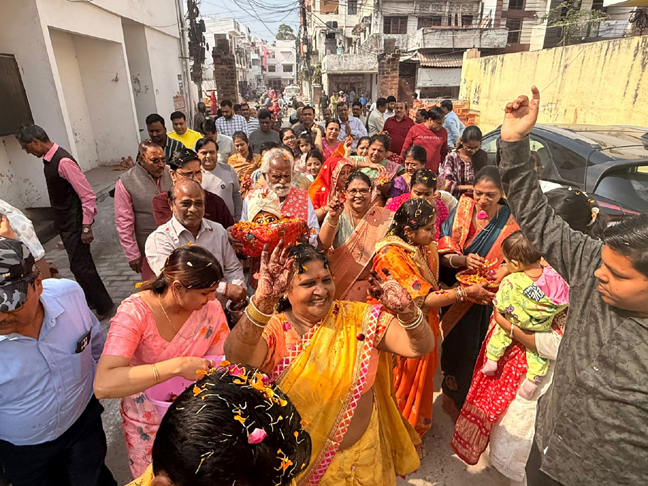 - श्रवण अग्रवाल ने बाबा का शीश सिर पर रखा, ढोल-नगाड़ों की थाप पर नाचते-गाते, रंग-गुलाल उड़ाते, फूलों की वर्षा करते हुए भक्तों की टोली ने ऐशबाग के तिलकनगर स्थित श्याम ज्योत मंडल कार्यालय तक भव्य शोभायात्रा निकाली।