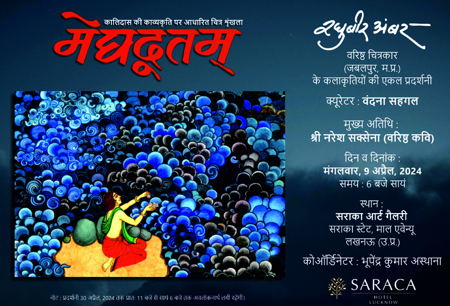 श्री अम्बर के चित्रों की इस एकल प्रदर्शनी शीर्षक “ मेघदूतम ” की क्यूरेटर डॉ वंदना सहगल हैं। इस प्रदर्शनी का उद्घाटन 9 अप्रैल 2024 को सायं 6 बजे मुख्य अतिथि देश के प्रख्यात कवि,लेखक श्री नरेश सक्सेना करेंगे।