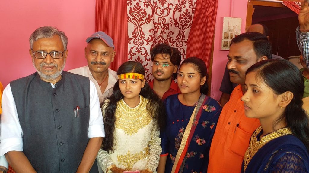 पूर्णिया/पटना, 29 मई 2019: उपमुख्यमंत्री सुशील कुमार मोदी आज बिहार सरकार के कला संस्कृति एवं युवा विभाग के मंत्री कृष्ण कुमार ऋषि की बेटी सोनम की शादी में शामिल हुए। इस दौरान सुशील कुमार मोदी ने वर -वधु को बधाई व आशीर्वाद दिया। साथ ही नवविवाहित जोड़ी के लिए मंगलकामनाएं भी कीं।