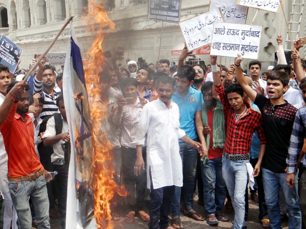 विरोध प्रदर्शन आसफि मस्जिद से जुलूस के रूप में निकल कर बड़े इमामबाड़े के मुख्य द्वार तक गया जहां ओलमा ने प्रदर्शनकारियों को संबोधित किया, प्रर्दशनकारी हाथों में सऊदी सरकार और इसराइल एवं अमेरिका के खिलाफ नारे लिखी तखतियाँ लिए हुए थे। प्रर्दशन मंे आले सऊद के आतंकवाद एवं जुल्म के खिलाफ नारे लगाए गए।प्रर्दश्न के अंत में सऊदी ताना शाह,शाह सलमान की तसवीर को जला कर प्रदर्शन समाप्त किया गया।