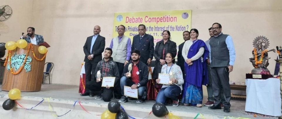 लखनऊ। विद्यांत हिन्दू पीजी कॉलेज के वाणिज्य विभाग द्वारा संगोष्ठी का आयोजन किया गया। इसके अंतर्गत ‘क्या निजीकरण राष्ट्रहित में है’-विषय पर विद्यार्थियों की वाद विवाद प्रतियोगिता भी हुई। जिसमें कमल मित्तल को प्रथम,सांभवी तिवारी को द्वितीय और वल्लभ शर्मा को तृतीय पुरष्कार मिला।