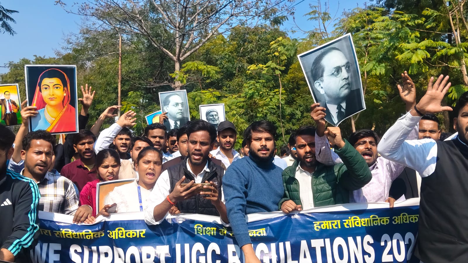 यूजीसी इक्विटी गाइडलाइंस 2026 के समर्थन में छात्रों का जोरदार प्रदर्शन